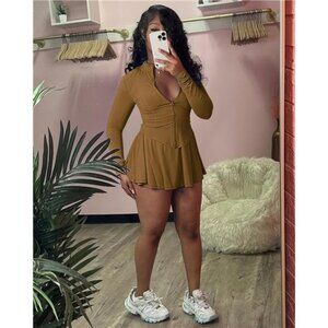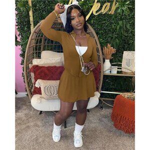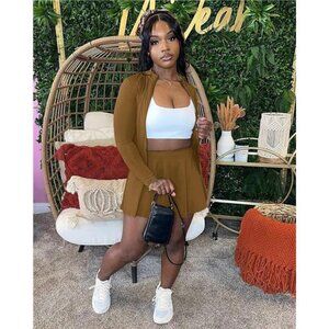 Two Piece Tennis Skirt Sets for Women Dark Brown