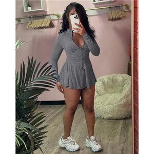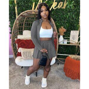 Two Piece Tennis Skirt Sets for Women Dark Gray