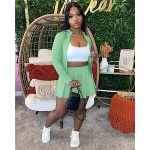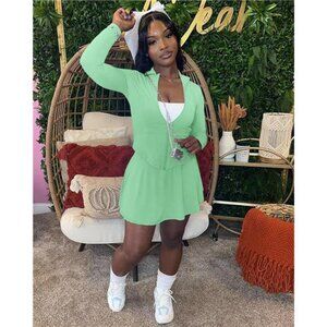 Two Piece Tennis Skirt Sets for Women Light Green