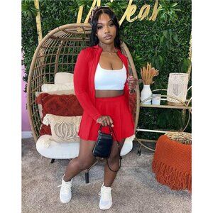 【2 piece sets features】tennis skirt sets women 2 piece outfits,2 piece skirt outfits,deep v neck,long sleeves,slim-fit,tight jacket,solid color,zip up,plus size,high waisted,solid color mini skirt with shorts,pleated mini skirt,flared skirt,short skirt set,2 set outfits for women,high waisted pleated mini skirt with shorts,skirt sets women 2 piece outfits,a line skirt accentuates the figure,golf dress,full of fashion sense,athletic skort and jacket set,the style is cute and trendy.