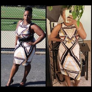 Pencil skirt. Sleeveless top zips up the back gold zipper. Gently worn .. hate to let it go but it’s too big. Fits a size 14-16