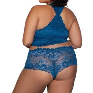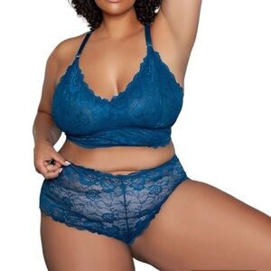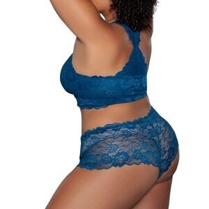 This two piece plus size bralette and boy shorts set features gorgeous floral lace and sheer mesh - perfect for lounging