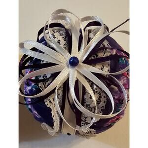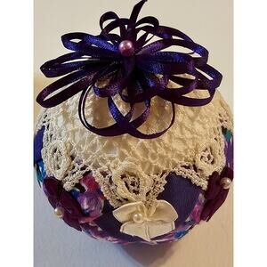 Two Quilted Christmas Ball Ornaments Handmade Purple Victorian Look