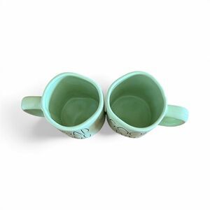 Two Rae Dunn Magenta "Good Egg/Bad Egg" Mint Green Coffee Mugs/Cups Drinkware