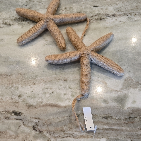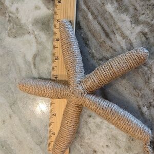 Set of two raffia starfish decor pieces. Perfect for coastal-themed spaces.