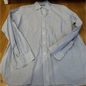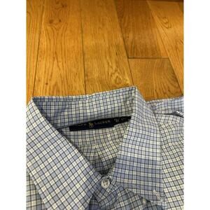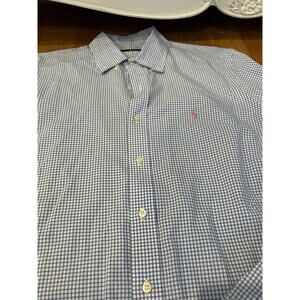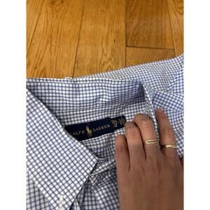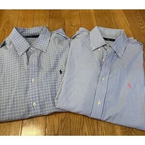 Two Ralph Lauren Polo Button Down Checkered Dress Shirt Size 16.5 42 Blue. Condition is Pre-owned. Shipped with USPS Ground Advantage.