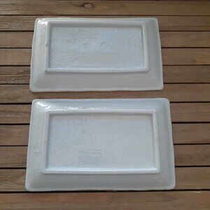 Two Rectangular Japanese Sushi Plates Fish Tuna Prawn Salmon Squid Abalone Japan