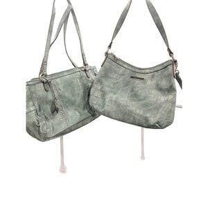 Two Relic Crocodile Embossed Handbags - Blue Gray Faux Leather With Brown Interi