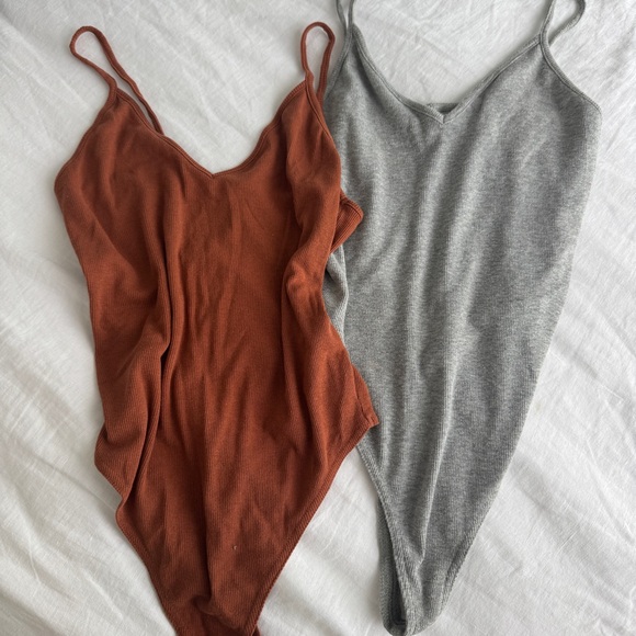 Stylish gray and rust colored bodysuits with spaghetti straps. Originally purchased from Nordstrom