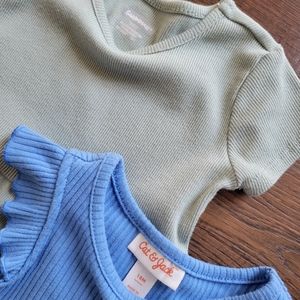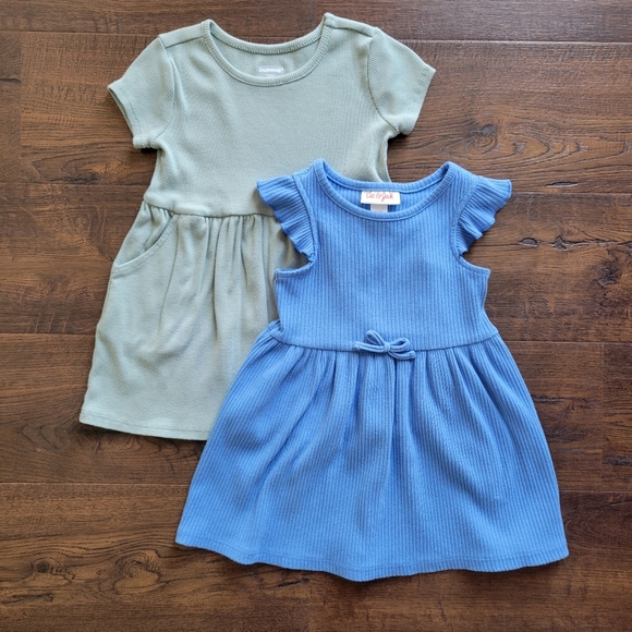 Two short sleeve ribbed dresses. Sage/green and blue. Garnimals and Cat & Jack. Both size 18 months. Some wash wear. See all pictures as part of the description.