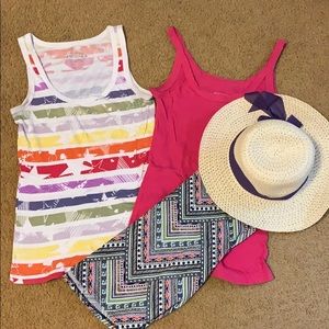 Two Ribbed Tank Tops Multicolored and Hot Pink Arizona and Rue 21 Size XL Beach Ready