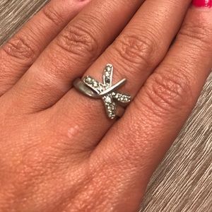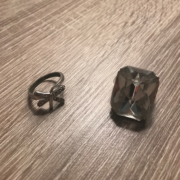 Large Emerald cut ring and butterfly rhinestone ring (missing one stone).