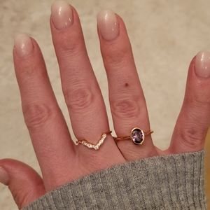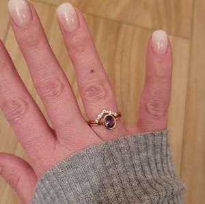 A gorgeous double band beauty featuring an oval purple crystal, embellished by a geometric halo of white crystals. Wear this set together as a show stopping stacker, or separate for more individuality