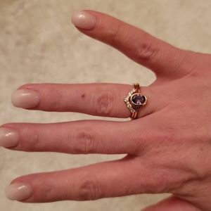 Design: double band oval cut purple crystal + round cut white crystals