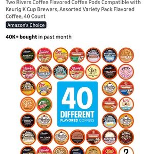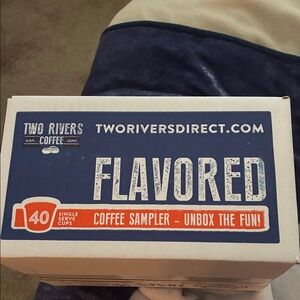 Flavored coffee sampler box with 40 single serve cups. Unbox the fun with Two Rivers Coffee.