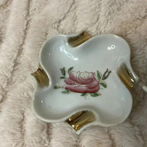Two Rose White Green Gold Made in Occupied Japan Ashtrays