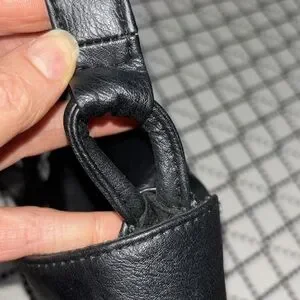 2nd has flap closure with woven detail along the front, body of purse is in very good condition except for tiny scuff (see photo) and strap has a ripped hole but purse has loops you can clip any strap too.