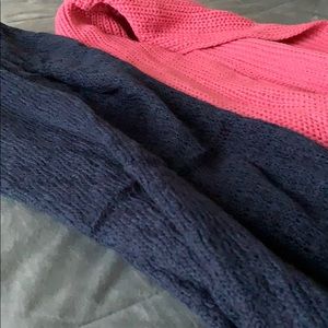 Two Knit Rue21 infinity scarves. One navy and one bubblegum pink.