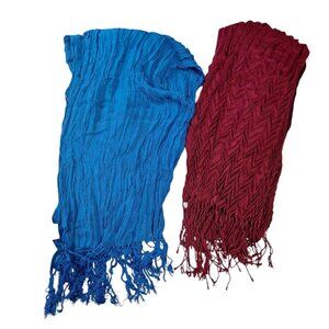Two Scarves Wraps Fringe Crinkle Long Blue Red