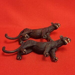 Two Schleich black panther figurines. These are highly detailed, realistic animal figures designed for imaginative play and collecting.