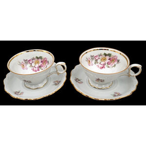Schumann Arzberg Briar Rose Cup & Saucer Set Bavaria Germany Gold Trim 1950s Set of 2