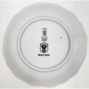 Beautiful vintage Schumann Arzberg “Briar Rose” cup and saucer set made in Bavaria, Germany, and imported by E&R Golden Crown. Features a soft pink briar rose floral design, embossed scroll edges, and elegant gold trim. Crafted from fine porcelain in the 1950s–1960s, this set captures timeless Romantic Rococo Revival charm — perfect for tea, display, or collectors of vintage Bavarian china.