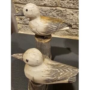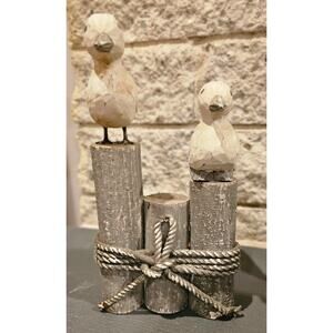Seagulls on Wood Pier Posts Hand Carved & Painted Figurine Nautical Maritime