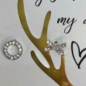 Two Sets Earrings Rhinestone X&O and Solid Squares Silvertone - This is a set of two pairs of earrings that are "just for you, my deer."