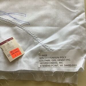 You get 2 sets of white pillow cases. One set is a woman with a parasol and the other set is a floral motif. Each set stamped for embroidery. One set is partially embroidered. Shown in pictures.