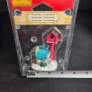 Two sets of Lemax Village collection figurines, new old stock. The holiday shoppers set is part of the Caddington Village Collection. The set consists of six figurines. Holiday Shoppers item number 92683. It was released in 2013. The second, smaller set is a bird bath and a birdhouse, item number 14355. And was released in 2011. These figurines are made of polyresin are used to add detail to Christmas village displays. Non-smoking pet free home.