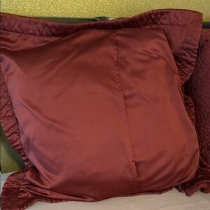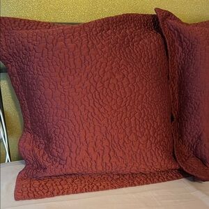 Elegant persimmon red quilted Euro sized shams. Textured design. Luxurious feel.