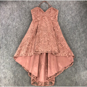 Two Sisters Dress Size 8 Blush Pink Floral Lace Overlay High-Low Sweetheart Neck