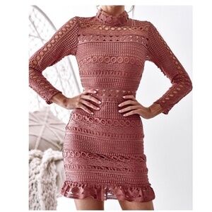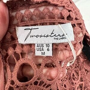 Two Sisters Riverdale Mauve Pink Lace Crochet Long Sleeve Mini Dress 6 M NWT