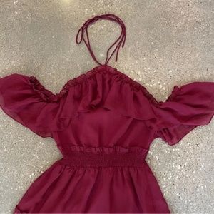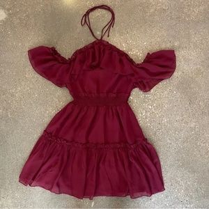 Two Sisters The Label Halter Burgundy Chiffon Off the Shoulder Dress - Size 6