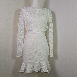 Two Sisters The Label White Lace Long Sleeve Mini Dress XS US 2 Open Back