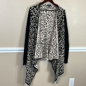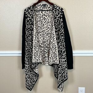 Two Sisters Women Animal Print Open Cardigan Sweater M L Cozy Warm Oversized E3