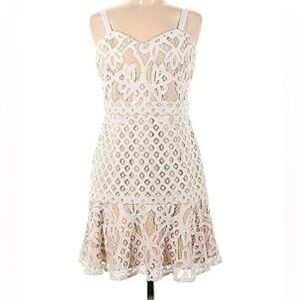 Two Sisters the Label,Exquisite Lace Over Nude Dress Soft Ruffled Hem, Size 2