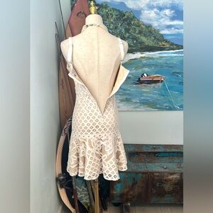 • Sleeveless, halter neckline, see through fabric or panel embellishment, crochet embellishment, ivory, short #resale #gentlyused #luxurythrift #coutureresale #preowned #luxuryresale, #shoplocal #fashion #consignment #thrift #ootd #vintage #platoscloset #shopsmall #swimwear#bikini #dresses #jumpers #sustainablefashion #style #resaleboutique #thrifting #secondhand #weship #resaleshop #reseller #upscaleresale #poshmark #smallbusiness #preloved #orlando #resalenotretail #shopmycloset #designer #shopping #consignmentboutique #recycle #thriftstorefinds pageant, date night, holiday party, gala, wedding guest, military ball, photoshoot, engagement pictures, red carpet, formal, evening gown, elegant, summer wedding, outdoor wedding, army ball, marine ball, black tie, charity event, guest of wedding, wedding second dress, wedding bridal reception dress, wedding rehearsal, bridal shower, bridal party, prom, Mardi Gras, special occasion, mother of the bride, mother of the groom, maid of honor, matron of honor, floral,