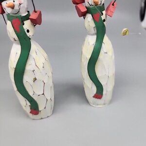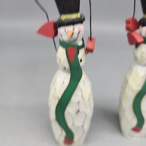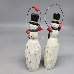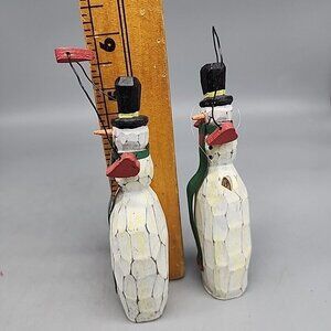 Two Snowman Snowmen Figurine Wood Style Resin Rustic Winter Holiday 5” Tall Pair