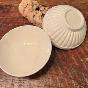 Two Soft White Footed Haeger 9" Stoneware Bowls