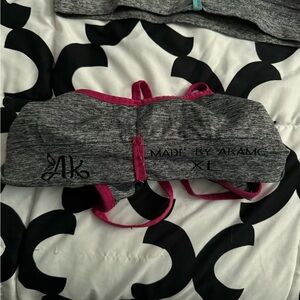 These are two sports bras that are very comfortable and cute. The padding in both bra is removed. They sizing says XL but fits more like a medium. Smoke free home.