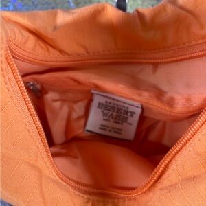 Stylish women's bag featuring a vibrant floral design and a bold orange base. Perfect for adding a pop of color to any outfit.