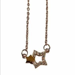 Two Star Necklace Rose Gold with Rhinestones