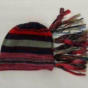 Beanie with ribbons and tassels. 9-1/4"w x 7-1/2"h. One size. Funky streetwear beanie. Paid $60, worn once.