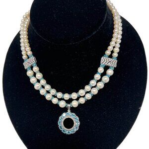 Two Strands Pearl, And Apatite Necklace With Apatite Pendant