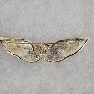 This elegant swan wing brooch combines gold-tone metal with black enamel and rhinestones for a classic accessory. Secure pin backing ensures stability with a touch of sophistication.