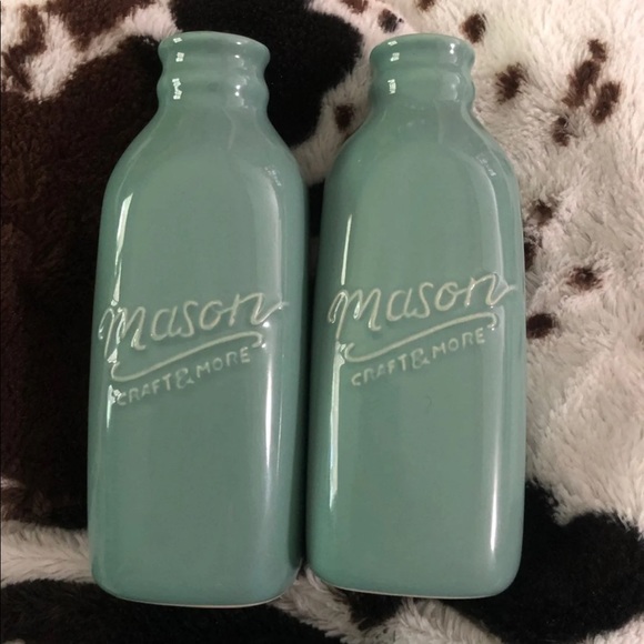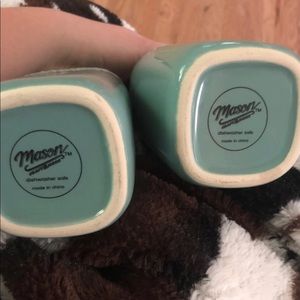 Set of TWO teal colored mason brand vases Pairs well with Rae Dunn