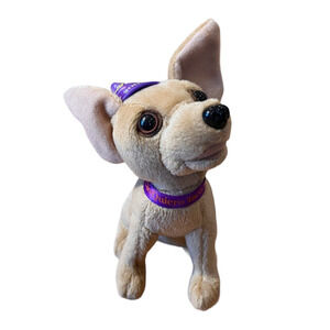 You'll get two Taco Bell Chihuahuas. One has a heart and a black collar and one has a purple collar and a hat to celebrate the new year (2000) Both are in good used condition. Tush tags present. One is stained (the one with the hat), the other is fine, both are legible. Neither one of them talks, as they originally did.