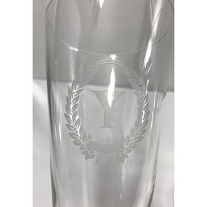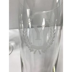 Two 9" Tall Champagne Flutes Monogram Y Wedding Glasses Barware...good pre-owned condition...no chips or cracks...see photos
