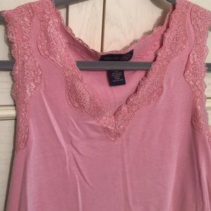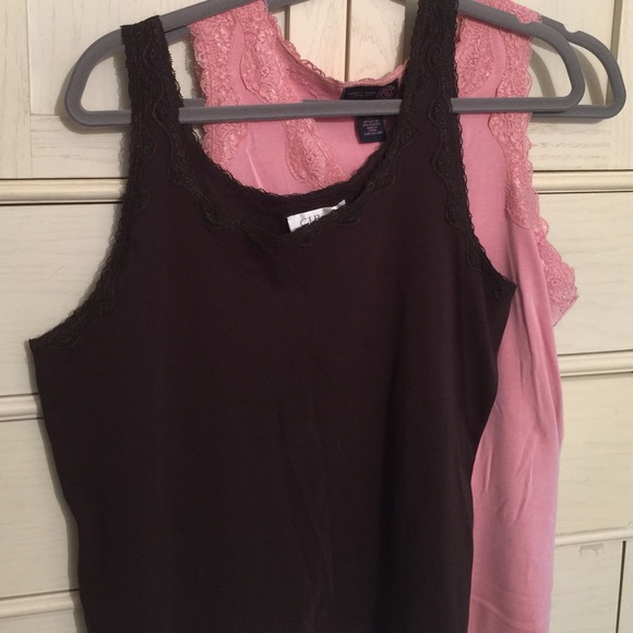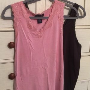 Two tone on tone, lace trimmed, tank bundle. One is a distressed Mauve color by Venezia Jean Co., the other is Chocolate Brown by C.J. Banks.